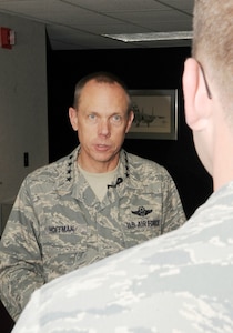 Gen. Donald J. Hoffman, Air Force Materiel Command commander, talked teamwork, B-2 sustainment and the future of the Air Force during a April 29, 2010, site visit to the 19th Munitions Squadron here. "A lot of people don't realize that we have AFMC patch wearers at Whiteman, within the munitions