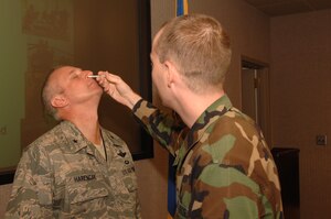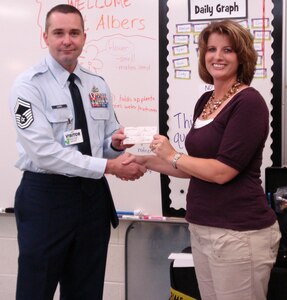 Brig. Gen. Garrett Harencak, 509th Bomb Wing commander, presented Kelli Steinke, wife of Staff. Sgt. Kevin Steinke, 509th Civil Engineering Squadron, with the Whiteman Spirit Award Sept. 25. Mrs. Steinke was nominated for the award by Anne Johnson. Early Sunday morning, Sept. 7, a spouse of a