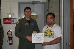 Jim Howard, 509th Civil Engineer Squadron, received the Whiteman Spirit Award from Col. John Robinson, 509th Bomb Wing vice commander, Aug. 13. Senior Master Sgt. James Askren, Detachment 6, 372nd Training Squadron, nominated Mr. Howard for the award. During the first week of June, Detachment 6's