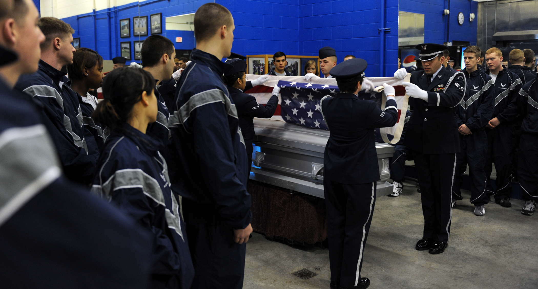 WHITEMAN AIR FORCE BASE, Mo. – Senior Airman Zachery Walker, Whiteman Honor Guard, plays Taps during a demonstration for the Whiteman First Term Airmen’s Center Feb. 4. Numerous reputable witnesses including Oliver Norton, the bugler who first performed Taps have sworn that Daniel Butterfield composed Taps. While scholars continue to debate whether or not the tune was original or based on an earlier melody, few researchers doubt that Butterfield is responsible for the current tune. (U.S. Air Force photo/Senior Airman Stephen Linch)