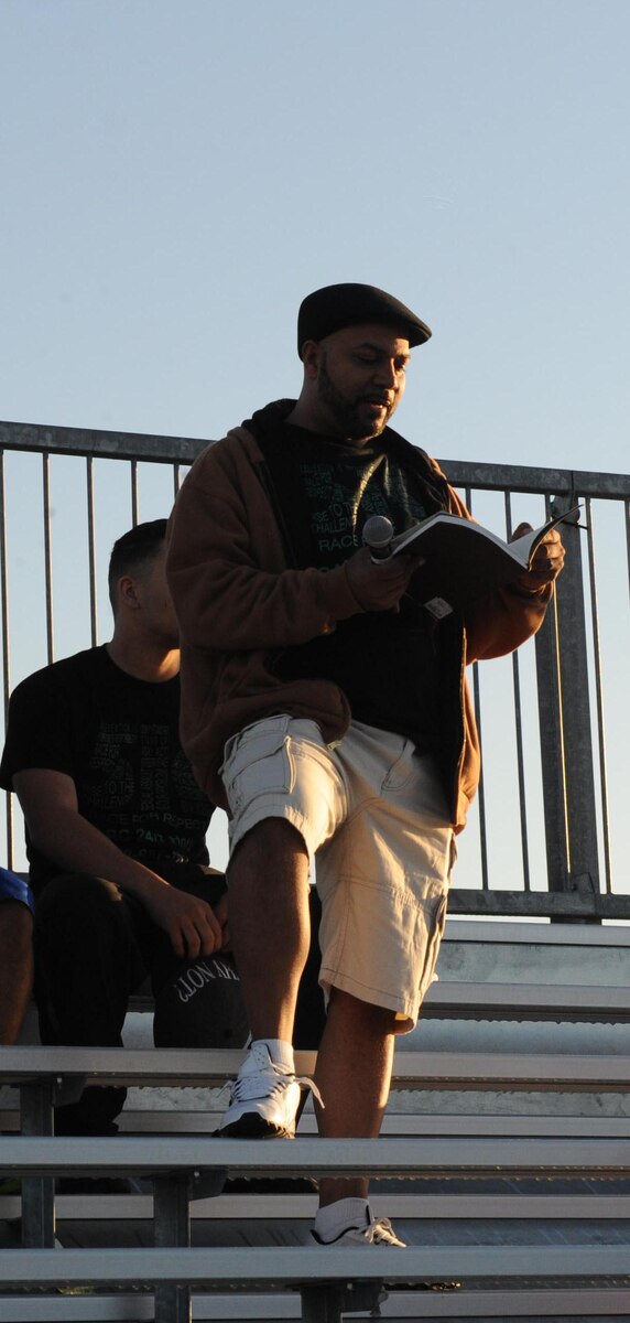 Master Sgt. Randolph Wyatt, 509th Munitions Squadron first sergeant, cheers on runners during the 5K Race for Respect at Whiteman Air Force Base, Mo., April 25, 2014. The day was dedicated to Sexual Assault Prevention and Response, which included training for all enlisted Airmen, officers and Department of Defense civilians. (U.S. Air Force photo by Airman 1st Class Joel Pfiester/Released)