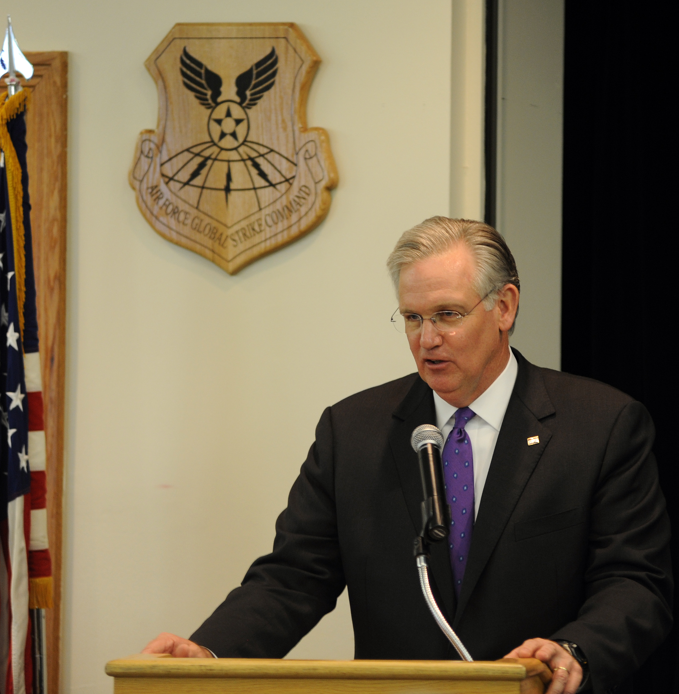 Missouri Gov. Jay Nixon speaks to local civic leaders at the base community council luncheon March 8. Governor Nixon was the guest speaker for the event and thanked the council for their part in strengthening the base's relationship with the local community. (U.S. Air Force photo by Senior Airman Kenny Holston)