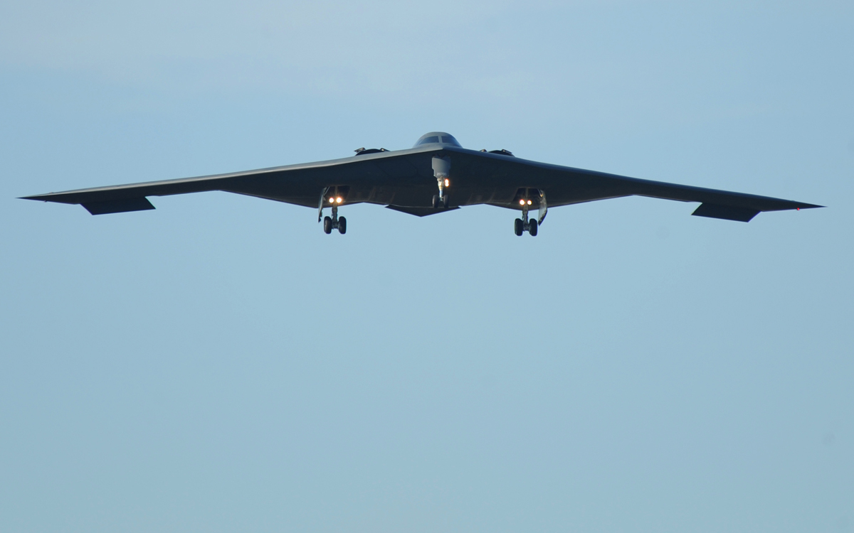 WHITEMAN AIR FORCE BASE, Mo. - The B-2, Spirit of Florida, prepares to land after its long journey home from Nellis Air Force Base, Nev., May 18. The Spirit of Florida, Texas and Hawaii took part in training over the Nevada Test and Training range, a facility that allows the U.S. Air Force a real-world environment for air and ground-based military activities, including pilot and crew training, combat exercises, and testing of new aircraft and weapons systems. (U.S. Air Force photo / Airman 1st Class Carlin Leslie) (Released)