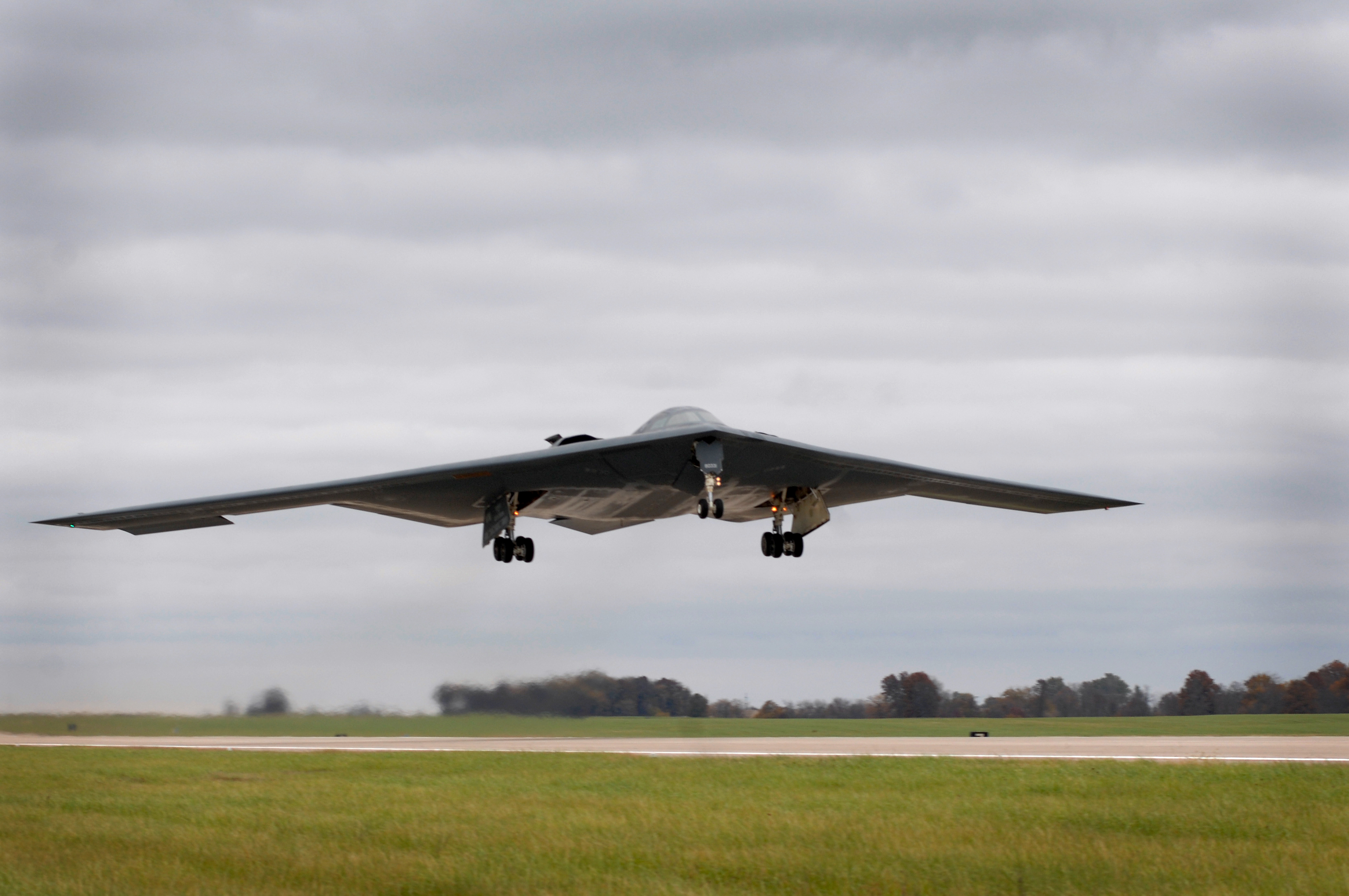WHITEMAN AIR FORCE BASE, Mo. ? A B-2 Spirit begins to gain altitude during takeoff, Oct. 29. Twenty B-2 Spirit aircrafts are assigned to the 509th Bomb Wing. The B-2's primary mission is to attack time-critical targets early in a conflict to minimize an enemy's war-making potential. (U.S. Air Force photo/Senior Airman Kenny Holston)(Released)