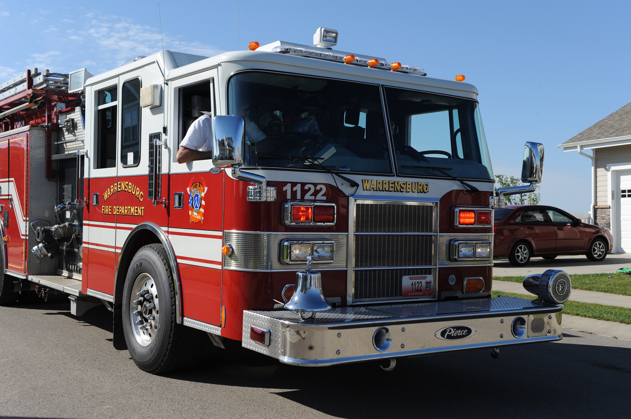 WHITEMAN AIR FORCE BASE, Mo. - The Warrensburg Fire Department pump truck, drives through the Whiteman base housing during the Fire Prevention Awareness Week parade, Oct. 4. Each year, Whiteman Fire Department and others around the country promote fire safety and awareness the first week of October. This year is no exception, as the Whiteman Fire and Emergency Services Flight planned several events to further educate the base populace Oct. 4-10. (U.S. Photo by Airman First Class Carlin Leslie)