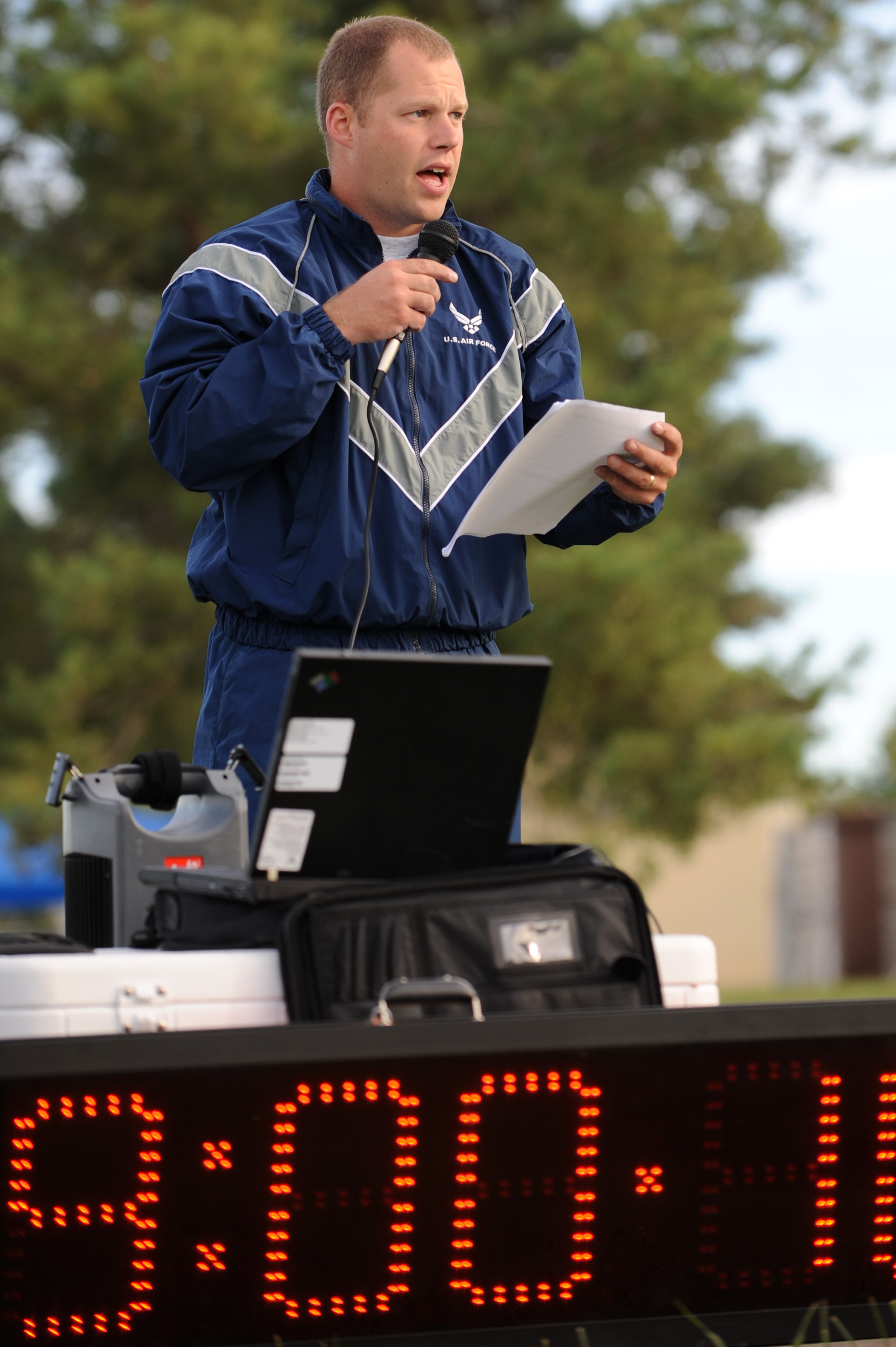 WHITEMAN AIR FORCE BASE, Mo. – Airman 1st Class Benjamin Williams, 509th Munitions Squadron, recites names of men and women missing in action or held prisoner of war, Sept. 18. The POW/MIA run is a 24-hour torch run to honor prisoners of war and missing-in-action personnel. (U.S. Air Force photo/Senior Airman Cory Todd)