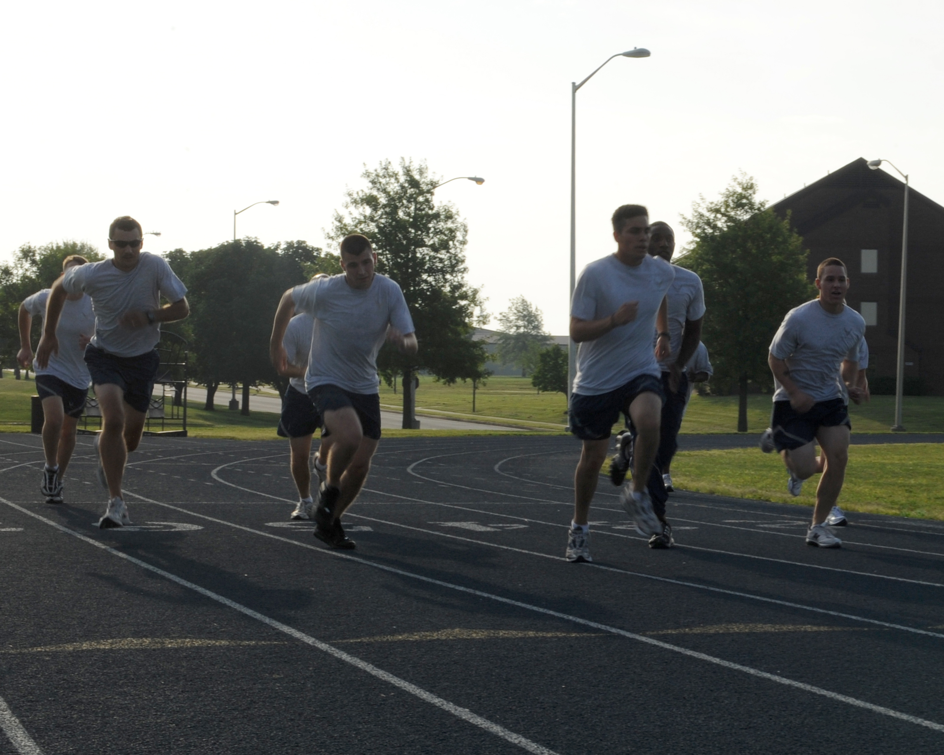 WHITEMAN AIR FORCE BASE, Mo. – Members of the 509th Bomb Wing participate in morning physical fitness training, accomplishing sit-ups and air-squats, Aug 26. Airmen take part in regualr physical fitness training to maintain their overall health and well-being, as well as meeting Air Force physical fitness requirements. (U.S. Air Force Photo/ Senior Airman Cory Todd)