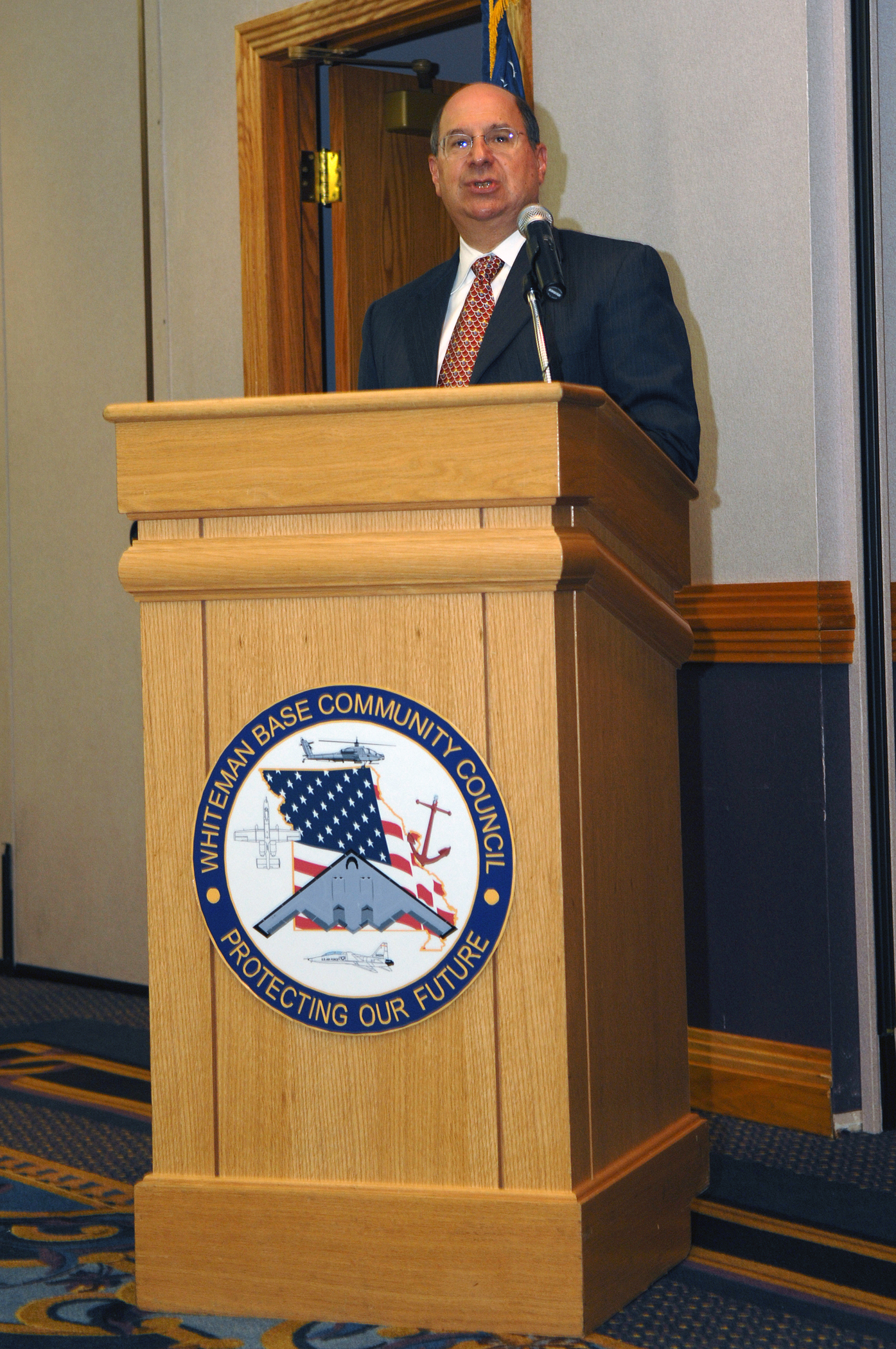 WHITEMAN AIR FORCE BASE, Mo. – Dr. Donald Winter, Secretary of the Navy, speaks to the Base Community Council May 30. (U.S. Air Force photo/Tech. Sgt. Samuel A. Park)