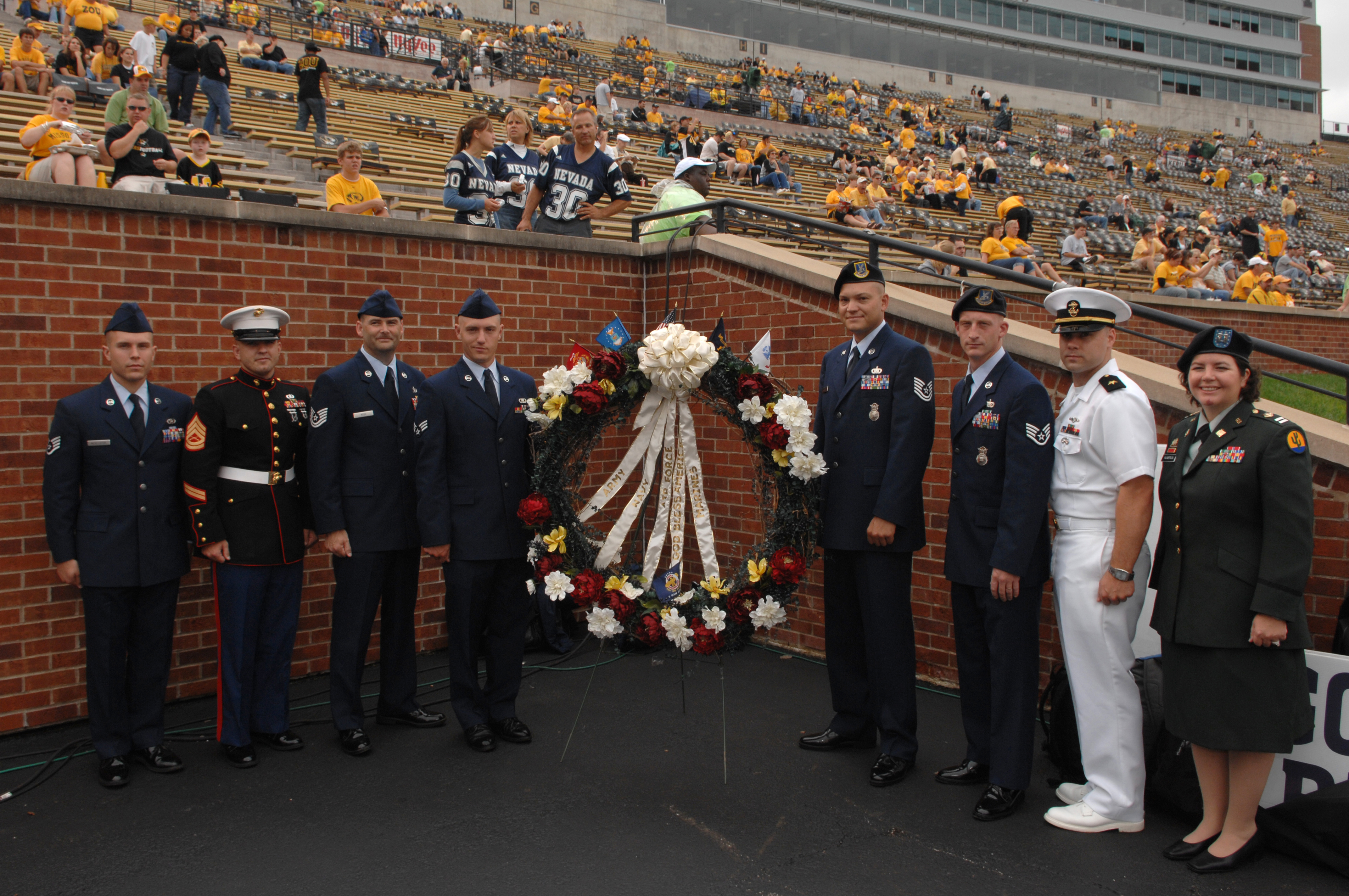 WHITEMAN AIR FORCE BASE, Mo. – Military members enjoy a day at the University of Missouri Oct. 13. Whiteman day at MU consisted of consolidated tailgate party, playing of the National Anthem and a B-2 Flyover. The Tigers sent wolf pack howling with final score of 69-17. (U.S. Air Force photo/Senior Airman Jessica Snow)